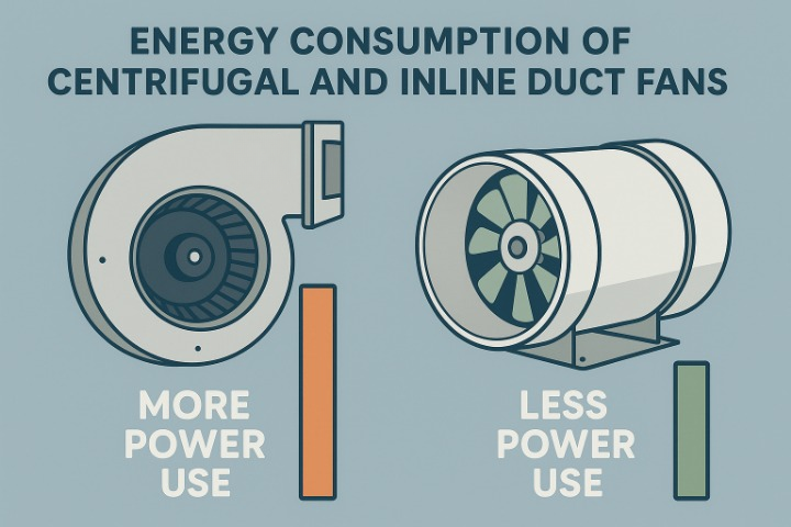 Inline duct fans typically use less energy because of their smaller motors and streamlined design. However, centrifugal fans with EC motors can also be highly efficient.