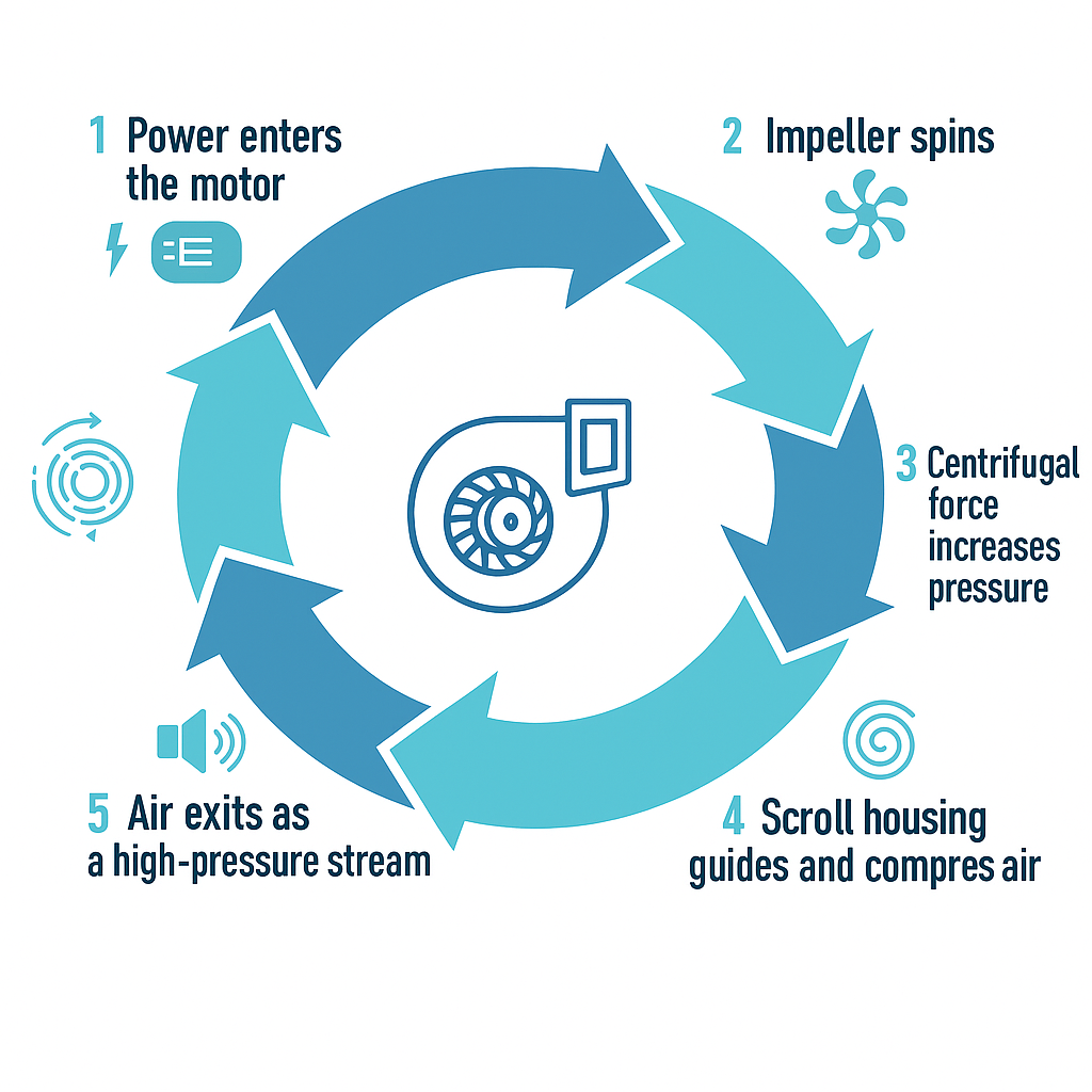 This simple 5-step explanation gives beginners the confidence to choose the right centrifugal blower based on how it works and what their application needs.