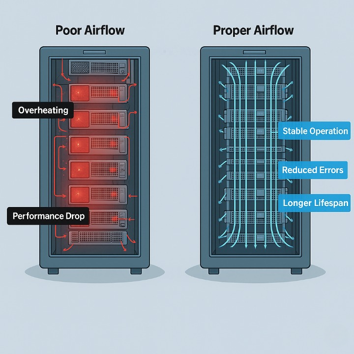 Without cabinet fans, equipment would overheat much faster, causing performance drops, random shutdowns, or permanent damage.